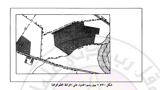 ـ الحدود الإدارية من الدرجة الثانية : قد تكون حدود المقاطعات أو المحافظات ، وقد تكون حدود المناطق أو حدود الفروع البلدية الحدود الإدارية من الدرجة الثالثة قد تكون حدود المناطق الإدارية للنموذج الاتحادي من الدول، وحدود النواحي للدول المقسمة الى محافظات ومناطق و نواحي الحدود الإدارية من الدرجة الرابعة ومثالها حدود القرى إن درجة التفصيل في رسم الحدود على الخرائط الجغرافية العامة تتعلق بمقاييس هذه الخرائط والمنطقة التي تشملها ووظيفة الخريطة فعلى الخرائط العامة التي تبين العالم بأكمله، أو قارة بكاملها يكفي رسم الحدود السياسية لكل دولة، العاصمة السياسية لها، وبعض المدن الكبرى إن وجدت وسمحت مساحة ووضع الدول بذلك. أما على الخرائط التي تبين مجموعة غير كبيرة من الدول، يتم رسم الحدود السياسية والحدود الإدارية من الدرجة الأولى ، وتحدد العاصمة السياسية والمراكز الإدارية للتقسيمات المرسومة أما على خرائط كل دولة على حدة ، فان التقسيمات الإدارية المرسومة قد تصل الى الدرجة الثالثة إذا كان مقياس الخريطة ومساحات التقسيمات تسمح بإظهارها ، وقد يكفي إظهار التقسيمات الإدارية من الدرجة الأولى فقط. وترسم الحدود بأشكال مختلفة على الخرائط العامة، ولكن من المفضل أن إن أنصف القط المـتتبع الأشكال المبينة في الشكل السابق وإن أضيف إليها خطوط متصلة ملونة لإظهارها بشكل أوضح. وفي هذا الإطار نرى أن رسم الحدود بخطوط متصلة مختلفة السماكات قد يؤدي الى الخلط بين الرموز الدالة على الحدود وتلك الدالة على طرق المواصلات مثلا وننصح دائما باستخدام الخطوط المبينة في الشكل السابق لرسم الحدود بأشكالها فقط.