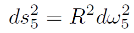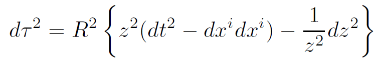 In this form it is clear that there is a horizon at z = 0 since the time–time component of the metric vanishes there. The boundary is at z = ∞. To construct the space AdS(5)⊗S(5) all we have to do is define 5 more coordinates ω5 describing the unit 5-sphere and add a term to the metric