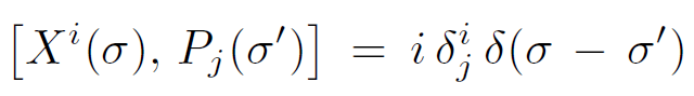 A string is a one-dimensional continuum whose points are parameterized by a continuous parameter σ1. The transverse coordinates of the point at σ1 are labeled Xi(σ), where σ1 runs from 0 to 2π. It is also a function of a time-like parameter σ0, which is identified with light cone time X+. Thus Xi(σ0, σ1) is a field defined on a 1+1 dimensional parameter space (σa). In addition to Xi(σ), the canonical momentum density Pi(σ) can also be defined. At equal times X and P satisfy