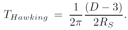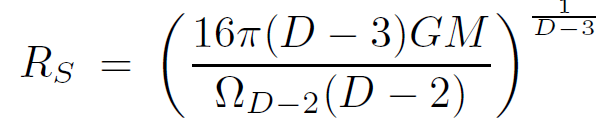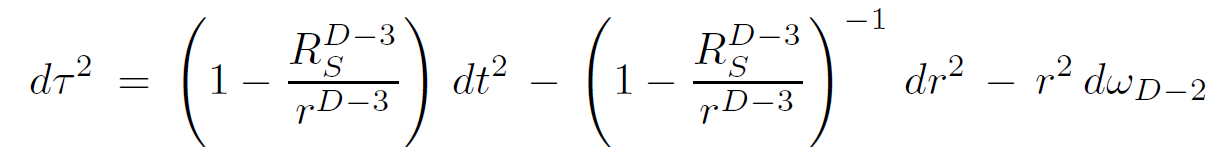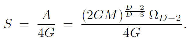 Because string theory is not necessarily a 4-dimensional theory, it is worth exploring the connections between strings and black holes in any dimension. Let us begin with the formula for the entropy of a Schwarzschild black hole in an arbitrary number of dimensions. Call the number of spacetime dimensions D. The black hole metric found by solving Einstein's equation in D dimensions is given by