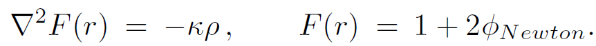 If we write F(r) ≡ e2Φ, a useful shortcut for calculating the solution to Einstein's equation 1.7 is to note its equivalence to the Newtonian Poisson equation in the exterior region