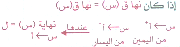 لكل اقتران ق(س) معرف على فترة قصيرة تحتوي العدد أ ، نهاية عندما تقترب س من أ هي ل وبالرموز .