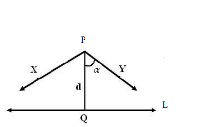 كل من هاتين الزاويتين هي زاوية توازي نقطة P الى المستقيم L.