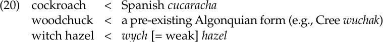 Some words are formed via folk etymology. This happens when speakers reinterpret a form – typically a borrowing from another language – on the basis of words or morphemes that already exist in the language. Examples of folk etymologies are given in (20):