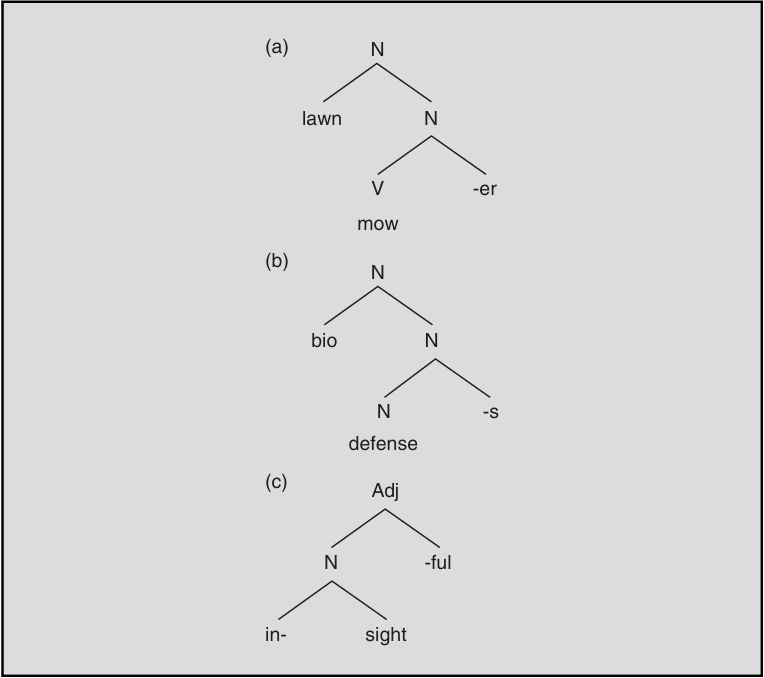 The bracketing structures in (25) are convenient, in part because they are so compact. But the structure of morphologically complex words is made most clear when we use tree diagrams, like the following: