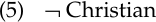 What’s the difference? Non-Christian means ‘not Christian’. While unchristian can mean that, too, more often than not it means something like ‘not behaving in a Christian manner’ or even ‘uncivilized and barbaric’. Likewise, non-human simply means ‘not human’, while inhuman refers to the absence of human qualities like pity or kindness. A person can be both human and inhuman, but not human and non-human. Thus, while the non-words in general simply negate their bases, the in- and un- words have the meaning ‘completely opposite to X’, where X is the meaning of their bases, in the way that east and west or long and short are opposed. To put it in a more technical way, non- is a logical or contrary negator. Using logical notation, we could represent non-Christian as in (5), where ¬ means ‘not’: