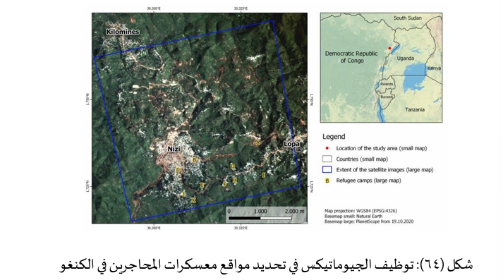 تحليل صور الأقمار الصناعية للاستخبارات غالباً ما يتداخل الاستخدامات مع الإنسانية مثلاً، تحديد تحركات اللاجئين أو الدمار في النزاعات عبر الصور لإبلاغ وكالات الإغاثة وهكذا يدعم الجيوماتكس الأمن ليس فقط بمعناه العسكري بل أمن الإنسان، عبر تقديم الأدلة على الأزمات للاستجابة العالمية.
