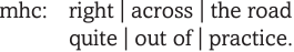 In Prepositional Phrases (PP) there are two obligatory elements: the prepositional head (h) and the complement (c). There is also an optional modifier (m), which is typically realized by an adverb of degree (e.g. right, quite). The structure of PPs is illustrated as follows:
