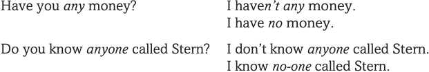 In many cases a similar idea can be expressed by using either no-negation or not- negation + any: