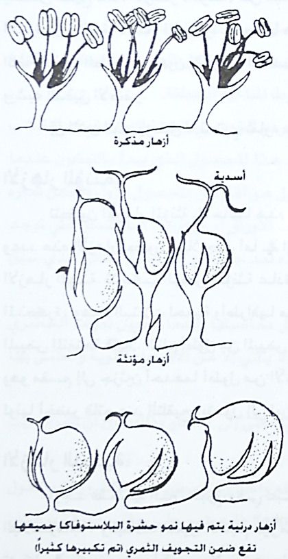 البرعم والازهار والثمار وطبيعة التلقيح والنمو: