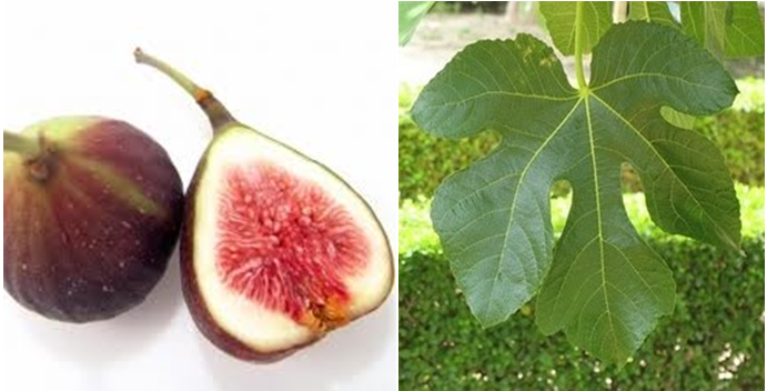 صورة توضح ورقة التين ومقطع طولي في الثمرة