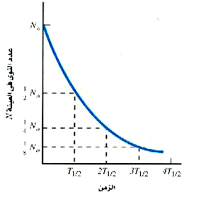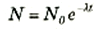 حيث λ هو ثابت الاضمحلال، والدالة e-λt هي الدالة الاسية، أما e فهي قاعدة اللوغاريتم الطبيعي وتساوي 2.7183.