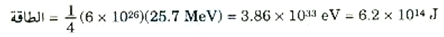 ولكن 1 kg من الهليوم به NA/4 ذرة ولذلك تكون الطاقة المفقودة في تكوين 1kg من الهليوم هي: