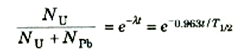 حيث T½ هو عمر النصف لليورانيوم 238 وهو 4.5×109 yr. وأقدم الصخور عمراً على الأرض هي تلك التي بها Nv = NPb ولذلك نقدر أن الأرض قد تجمدت منذ مدة تساوي عمر نصف واحد لليورانيوم 238 تقريباً.
