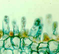 شكل رقم (1): الأكياس الأسكية العارية (كل كيس أسكي يحتو على 7 جراثيم اسكية)