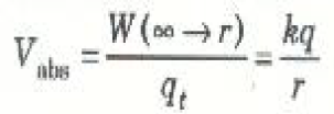 حيث k هو الثابت المذكور في قانون كولوم للقوة . وعندما نقسم الطرفين على q1 فإننا نحصل على تعبير للجهد المطلق Vabs الناشئ عن شحنة نقطية منعزلة q (او عن توزيع كروي التماثل للشحنة)