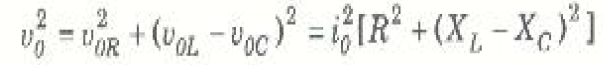 وبأخذ الجذر التربيعي لهذا المقدار فإننا نحصل على القانون المكافئ لقانون أوم بالنسبة لدائرة LRC: