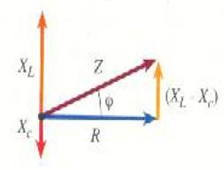 إذا كان XL > XC فإن الجهد يتقدم على التيار (يقوده) بزاوية طول مقدارها ϕ .أما إذا كان XL < XC فإن الجهد يتخلف ( يتأخر) عن التيار بالزاوية ϕ.