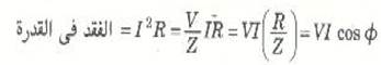 وعلى الرغم من معرفتنا أن فقد القدرة في الدائرة يحدث كلية في R ويساوي I2R إلا أن هناك طريقة مفيدة لحساب الفقد في القدرة.