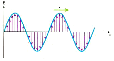 الشكل(2) : يتذبذب المجال الكهربي في موجة كهرومغناطيسية عموديا على اتجاه الانتشار ، ولذلك تعتبر الموجة مستعرضة.