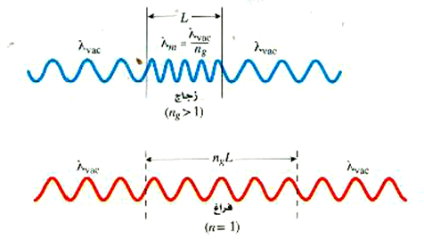 الشكل 1)): يحتوي سمك مقداره L من زجاج معامل انكساره ng نفس عدد الاطوال الموجية التي يحتوي عليها سمك مقداره ngL في الفراغ. أي أن للزجاج سمك بصري مكافئ مقداره ngL.