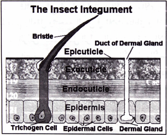 يتركب جدار جسم الحشرة من ثلاث طبقات رئيسية كما هو موضح بالشكل:
