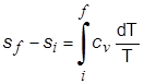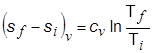 في عمليَّة أيزوحجميَّة منعكسة لا يُصاحبها تغير في الطور يكون السريان الحراري مساوياً لـِ cv dT ويُعطى التغير في الإنْتروبي بالعلاقة: