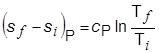 وفي عمليَّة أيزوباريَّة منعكسة لا يُصاحبها تغير في الطور يكون السريان الحراري مساوياً لـِ CP dT ويُعطى التغير في الإنْتروبي بالعلاقة:
