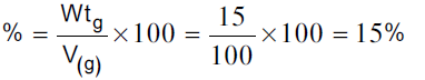 مثال 1. إحسب النسبة المئوية لمحلول وزنه 100 جم ويحتوى على 15 جم من مادة كبريتات