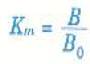 وتتراوح قيمKm في المواد الفيرومغناطيسية بين 100 – 100000 والجدول (1) يورد بعضاً من هذه المواد وقيم K لها. كما يضم الجدول أيضاً فئتين من المواد الأخرى. فبعضها وهو يسمى مواد ديامغناطيسية يقلل من قيمة المجال. من ثم تكون قيمKm له أقل من الواحد الصحيح وإشارتها سالبة لشكل طفيفة ولذا فإن قيمKm لها أكبر قليلاً من الواحد الصحيح.