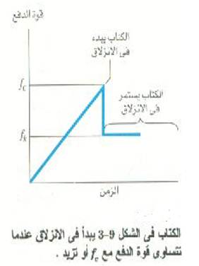 والآن قم بزيادة للكتاب تدريجياً ووطء كما هو مبين بالشكل 2)). عندما يصل مقدار الدفع إلى قيمة حرجة معينة fc سوف يبدأ الكتاب في الحركة فجأة. ولكي تحتفظ بالكتاب متحركاً لن تحتاج إلا إلى قوة أصغر مقدارها fk (الدليل السفلي k أول حرف في الكملة الانجليزية Kinetic بمعنى " متحرك " ). هذه التجربة توضح أن هناك قوتي احتكاك خامتين ، أولاهما هي قوة الاحتكاك العظمى ( الحرجة) fc وهي القوة اللازمة لكي يبدأ الجسم الحركة ، والثانية هي قوة احتكاك أصغر fk تعاكس حركة الجسم المنزلق. تذكر أن fc هي القيمة العظمى التي يمكن أن يصل إليها الاحتكاك الاستاتيكي fs والاحتكاك الاستاتيكي يمنع بدء الحركة الانزلاقية لأي قيمة للقيمة fs وحتى القيمة الحرجة.