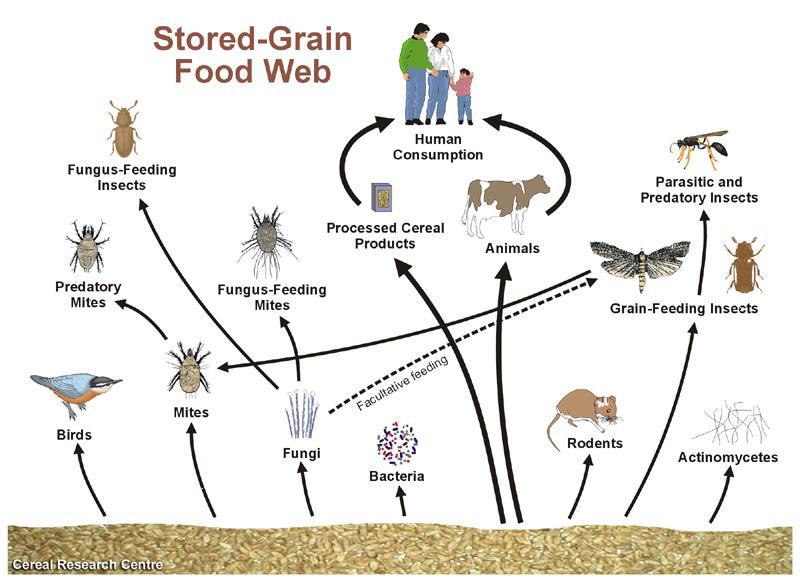 الشكل يوضح شبكة الغذاء في الحبوب المخزونة