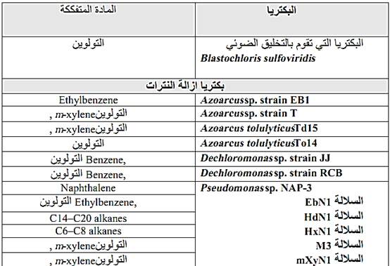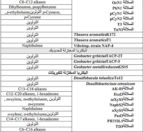 جدول 2 : الاحياء اللاهوائية المحللة لهيدروكربونات النفط