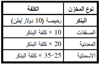 تستخدم عند توفر الارض في موقع التخزين وتكون سعتها من عدة الالاف إلى 250 الف طن وبكلفة تخزين رخيصة لاحظ الجدول التالي :