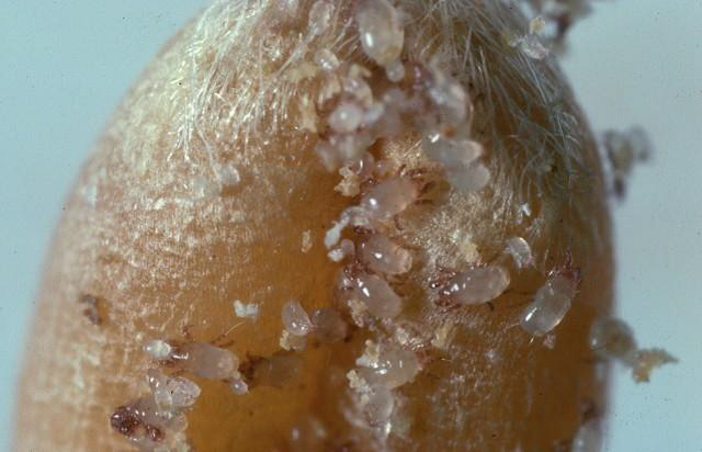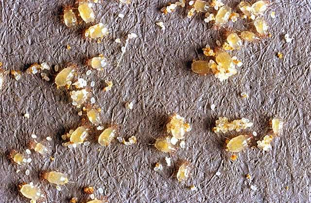 مجهري حجمه 50/1 من الانج ذو لون ابيض رمادي ناعم عديم الاجنحة ذو مسبح لين تنحو الاعداد الكبيرة من مصاحبة لطبقة من الغبار. البالغ منه ذو 8 ارجل في حين ان اليرقة ذو 8 ارجل كل رجل به مخلب واحد ومحص.