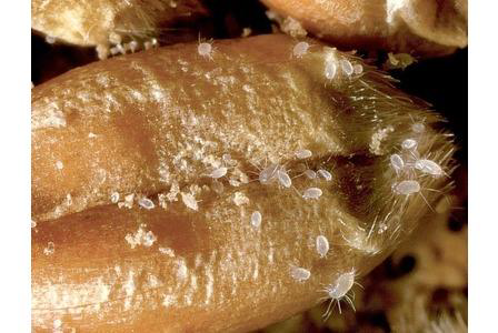 الإصابة بالحلم تزدهر عند وجود رطوبة 14% وتصبح الإصابة مشكلة في حدود بطولة 15-18% ثم تحدث ومشكلة الحشرات والعفن. الحلم والعفن والحشرات المتغذية على الاغصان مثل خنفساء العفن الشعيرية وخنفساء الحبوب الاجنبية وان حلم العفن يتعايش مع الفطر مثل Aspergillus flarus.