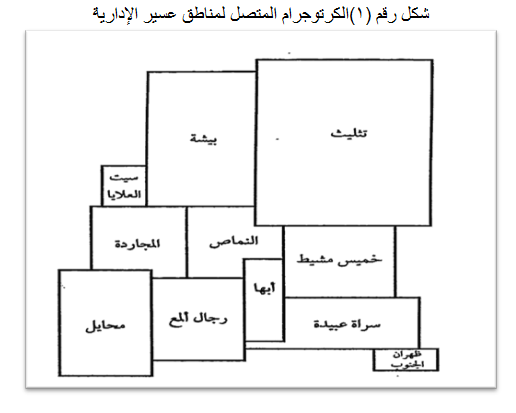 انظر الجدول رقم (1) الذي يوضح مساحة المناطق الإدارية في عسير.