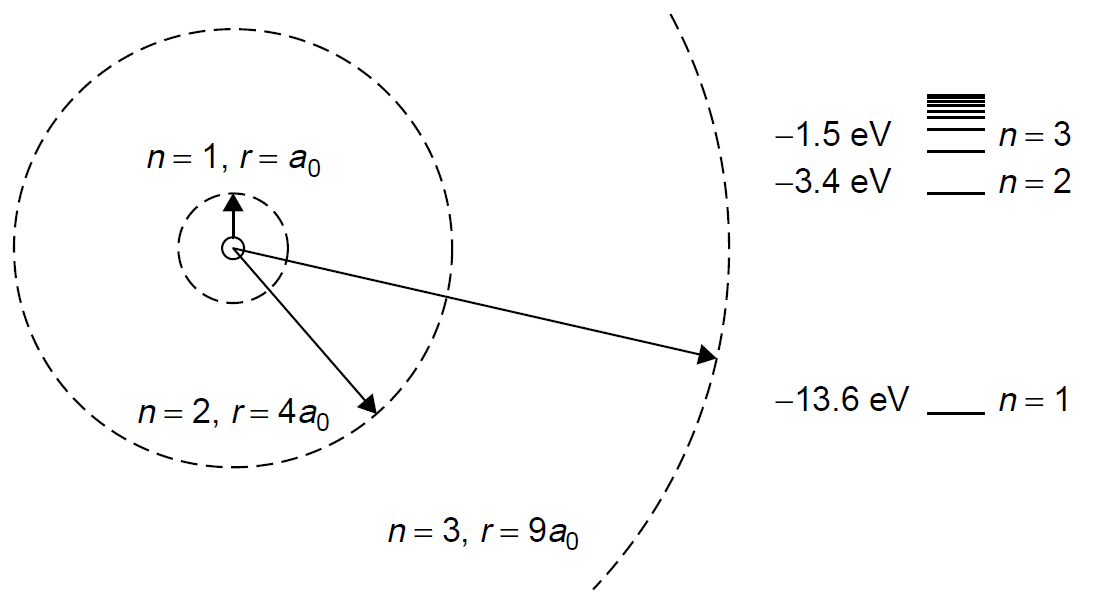 Figure 1.1. Hydrogen orbits and corresponding energy levels.
