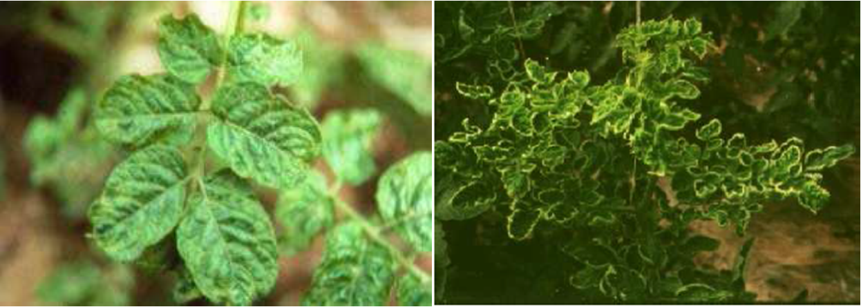 شكل يوضح مظاهر تجعد الأوراق على الطماطم والبطاطس