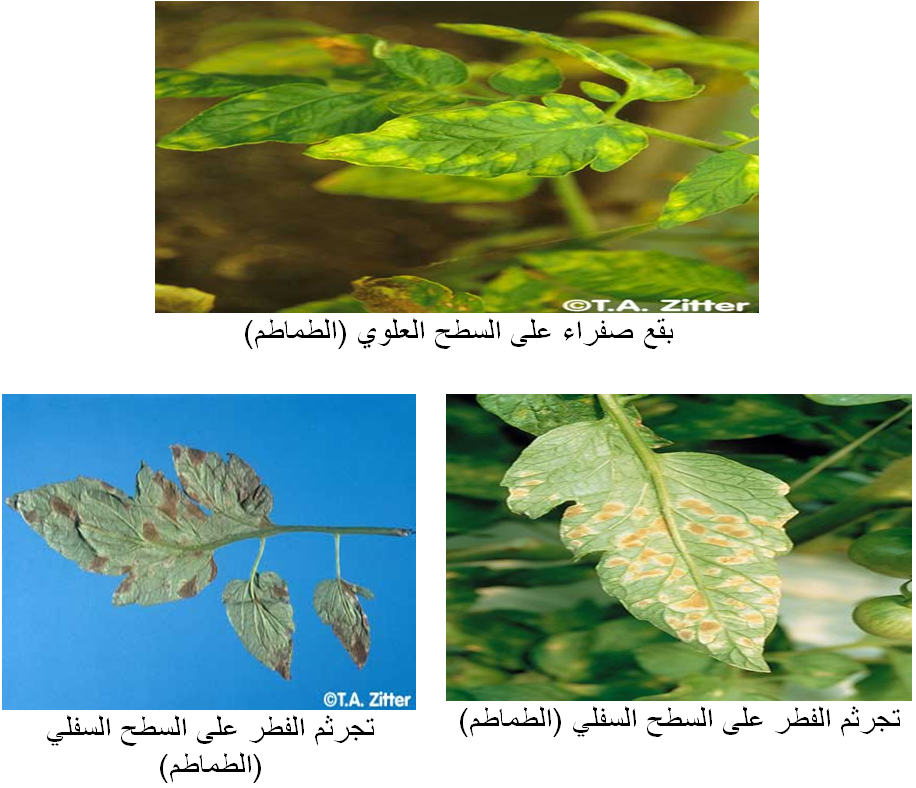 شكل يبين أعراض مرض عفن الأوراق في الطماطم