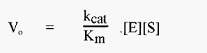 the initial velocity, expressed as a function of the concentrations of free enzyme [E] and substrate, is described by the equation:-
