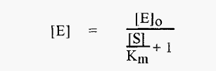 [E] is thus markedly influenced by the magnitude of [S] relative to Km. The variation of [E] with Km is least when [S] is small relative to Km (Modeling of equation 3 reveals that [S] must be ≤Km/40). When this is true (and only when this is true):-