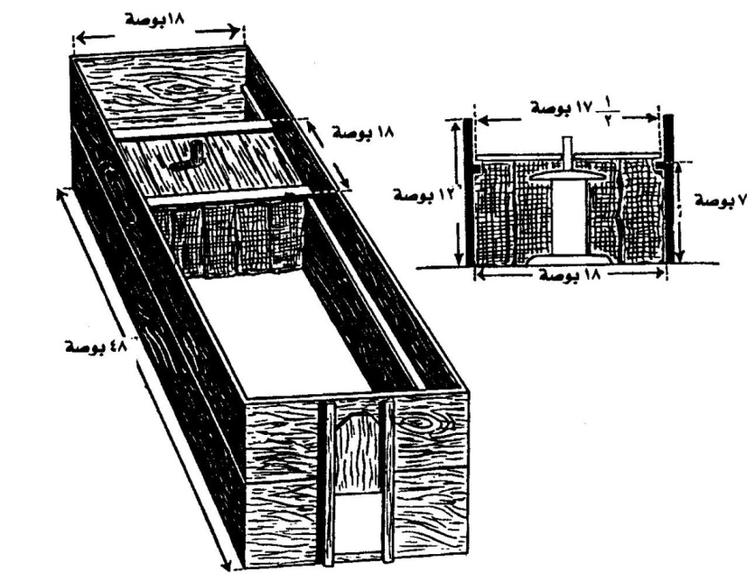 يعمل عدد 6 فتحات في كل جانب من الصندوق تكون هذه الفتحات بقطر يكفي لمرور القطبان الخشبية .