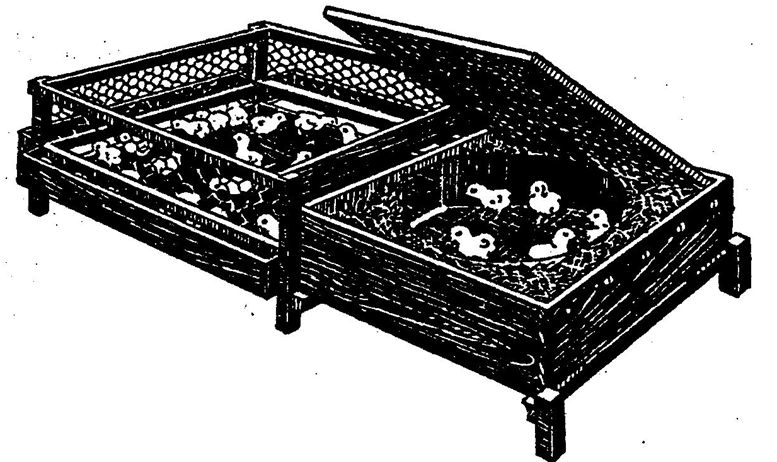 يعمل بأبعاد 12 بوصة عرض 16بوصة طول وعمق 9بوصات ، يفتح في أحد النهايات فتحة مربعة أبعادها 4×4بوصة تدخل وتخرج منها الكتاكيت .
