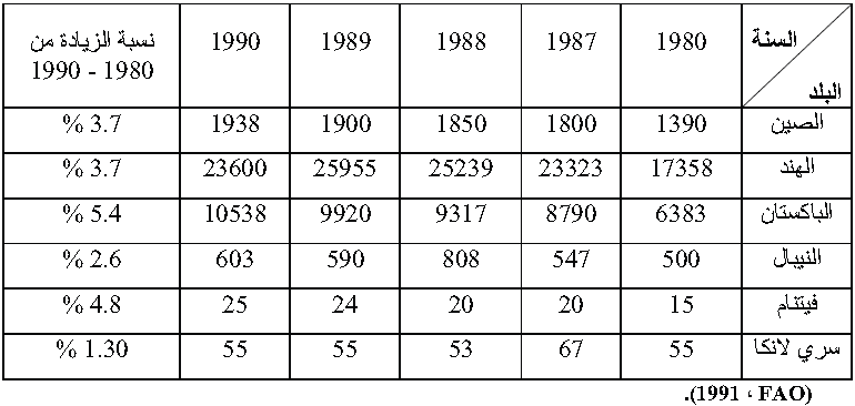 جدول (1) إنتاج الجاموس من الحليب في مختلف دول العالم
