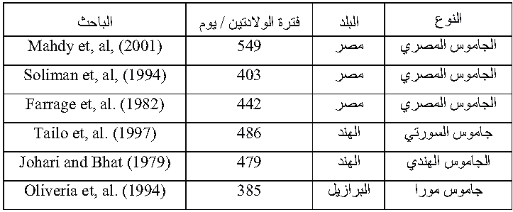 جدول (3) الفترة بين الولادتين في بعض جاموس العالم