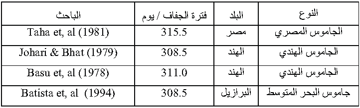 جدول (2) طول فترة الجفاف في بعض جاموس العالم