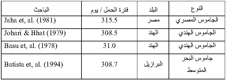 جدول (4) طول فترة الحمل في بعض جاموس العالم