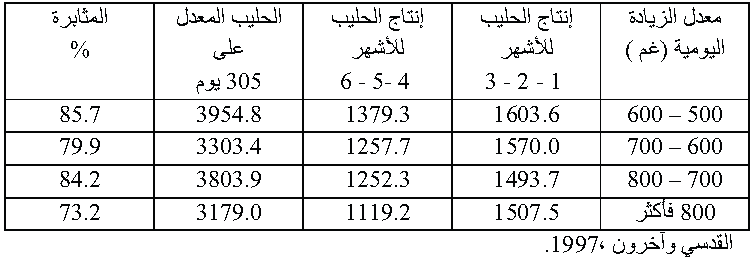 المصدر: القدسي, ناطق حميد, جيال فكتور ايليا .2010.انتاج ماشية الحليب.