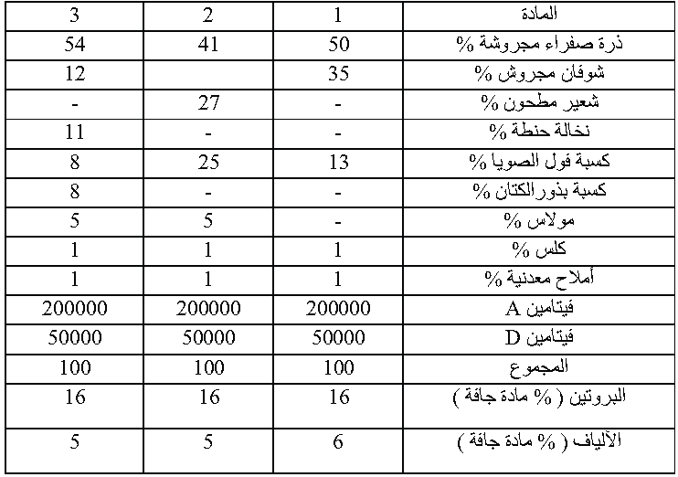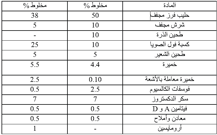 جدول (1) تركيب بعض أنواع البادئ لتغذية العجول الرضيعة